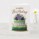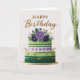 Elegant Floral Green Purple Gold Birthday Cake Card
