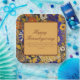 Elegant Happy Friendsgiving dinner table plates with harvest colours and flowers. Customise with your guests' names.