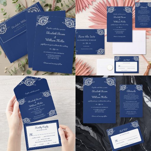 Elegant Floral Lace on Navy Blue WeddingDesigned by Milka Lovrin