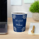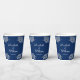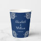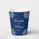 Elegant Floral Lace on Navy Blue Wedding Paper Cups
