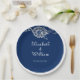 Elegant Floral Lace on Navy Blue Wedding Paper Plate