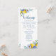 An elegant lemon floral wedding program. Coordinates with the lemon floral main squeeze wedding collection. This customisable Ceremony Program features yellow and blue watercolor foliage. To make advanced changes, go to "Click to customise further" option under Personalise this template. Designed for you by blackberry Boulevard.