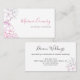 Elegant white business card with fine floral line drawing in shades of cassis purple, pink, mauve and blue. The design is lettered with handwritten script and modern typography. The template is set up for you to add your name, profession, company name, services and business contact details.