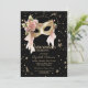 Elegant Floral Masque Stars Black Gold Quinceañera Invitation