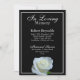 A beautiful flat card invitation with a white rose, symbol of love, on a black background.