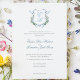 Elegant Floral Monogram Crest Formal Wedding Invitation