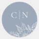 Elegant Floral Monogram Initials Blue Wedding Classic Round Sticker