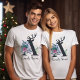 This stunning t-shirt design features the letter 'A' artfully styled with a reindeer silhouette, adorned with intricate florals in rich jewel tones and winter greens. Accented by delicate snowflakes and shimmering golden stars, this design beautifully captures the essence of the holiday season. Perfect for celebrating Christmas in style, it combines festive elegance with a personalised touch, making it a unique addition to your holiday wardrobe or a thoughtful gift for loved ones.