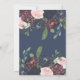 This lovely bridal lingerie shower invitation features gorgeous, trendy navy blue, plum purple, and blush pink watercolor flowers and green botanical leaves and foliage. Elegant navy blue calligraphy adds a classic touch, and the main text is a modern mix of navy and plum, all on a white background. The back of the invitation features more floral graphics on a matching dark blue background.