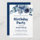 Elegant Floral Navy Blue Birthday Party Invitation
