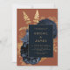 Elegant Floral Navy Blue Gold Rust QR Code Wedding Invitation