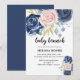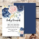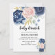 Elegant Floral navy blue pink baby brunch shower Invitation