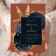 Elegant Floral Navy Blue Rust Gold Wedding Invitation