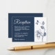 This elegant and minimalist wedding reception card features a beautiful and delicate Prussian blue orchids line drawing design, over a classy white background on the right side. Easily edit the template fields to add your reception information in a modern and simple white font over a Prussian blue background on the left side of the card.