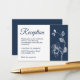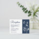 This elegant and minimalist wedding reception card features a beautiful and delicate white orchids line drawing design, over a classy Prussian blue background on the right side. Easily edit the template fields to add your reception information in a modern and simple Prussian blue font over a white background on the left side of the card.