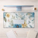 Introduce an air of sophistication to your workspace with this pastel blue and yellow floral desk mat. The mat showcases a watercolor illustration of vibrant Dahlia flowers in full bloom, complemented by delicate green leaves on a pristine white background. This charming floral print is sure to transform your home office into a delightful and inspiring space.