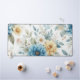 Elegant Floral Pastel Blue and Yellow on White Desk Mat