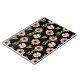 A stylish and elegant floral seamless pattern featuring soft pink flowers, white blossoms, yellow accents, and green leaves on a bold black background.