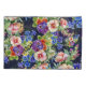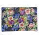 Elegant Floral Pattern Pink Yellow Blue Foliage - This product boasts an elegant floral pattern of colourful flowers and buds with thick green foliage nestled against dark blue background.
