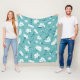 Elegant Floral Pattern - Teal & White Botanical Fleece Blanket