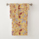 Elegant Floral Pattern with Red and Blue Leaves Bath Towel Set