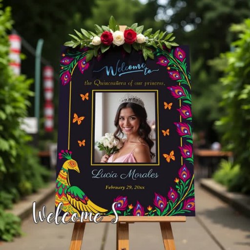 Elegant Floral Peacock Folk Art QuinceaneraDesigned by Dwi Luvi