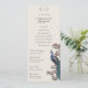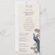 This elegant, ivory one-sided wedding Order of Service program features hand-drawn illustrations of a blue and teal peacock bird surrounded by Magnolia greenery, showcasing vibrant cream and blush pink magnolia flowers, all against an elegant ivory background. The back features an elegant floral and bird pattern with coordinating illustrations. Customise with your wedding details, including bride and groom monogram, the date, title, order of service and wedding party.