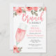 Elegant Floral Pink Brunch & Bubbly Bridal Shower Invitation