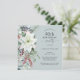 With all the festive vibes of the Christmas season, this winter holiday themed 90th birthday party design features a beautiful cascading bouquet of white watercolor poinsettias and trailing red and green floral elements on a dusty blue background. You can edit the age to any age if needed. December birthdays often get lost in the holiday festivities. Make them feel extra special hosting a birthday party in their honour.