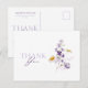 A beautifully designed postcard featuring delicate watercolor flowers in soft purple, cream, and green tones. The elegant typography and botanical elements create a timeless and sophisticated look, perfect for sending heartfelt messages for weddings, bridal showers, baby showers, or any special occasion. Share your gratitude or greetings in style with this charming floral postcard.