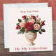 Make someone's day extra special with this elegant Valentine's Day card. The card features a soft pale pink backdrop, with a picture of a vase displaying a mix of beautiful red and pink roses. The simple “Be My Valentine” message below the picture adds romantic charm. Above the floral design, there’s space for your own custom text, an opportunity to personalise the card with a message that’s just right. The back of the card is plain pale pink, with plenty of room to add your own handwritten sentiments. Send this card as a delightful gesture to make a romantic impression.
