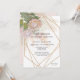 "Elegant Floral Protea Pampas Grass Geometric Gold Wedding Invitation." Beautiful King Protea flowers were painted in oil pastels by internationally licensed artist and designer and paired with a white hydrangea blossom, peony and pampas grass foliage. Rose gold glitter geometric frame adds a modern touch. Copyright.