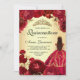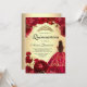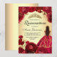 An elegant floral red and gold princess themed Quinceañera invitation. Please note, foil details are simulated.