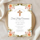 Personalised Elegant Floral Religious Cross First Communion Invitation