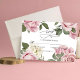 Design features watercolor airy Bouquet, roses, flowers, floral customisable greenery foliage, and branches in various shades of green with print.