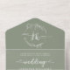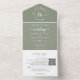 Elegant Floral Sage Green Monogram QR Code Wedding All In One Invitation