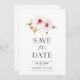 A beautifully designed save the date card featuring delicate watercolor flowers in soft pastel tones. The elegant typography and minimalist layout create a sophisticated and romantic feel, perfect for announcing your special day. Fully customisable with names, date, and personal details.