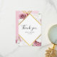 Elegant floral thank you card featuring a blush pink rose flowers with a gold effect geometric frame. From "Modern Floral and Geometric" collection, this gorgeous and sophisticated layout shows your thank you details in a stylish script and modern typography with a rich bouquet on a white background.