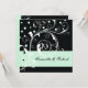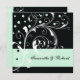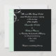 Elegant floral scroll leaf black, mint green flourish wedding invitation, featuring white scroll leafs, swirls, curls and mint green dots on black background. There is a mint green band with your text to the bottom. Classy, stylish and chic template design perfect for a spring or winter wedding. It is fully customisable and is part of a wedding set.