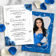 Elegant Floral Silver Royal Blue Quinceanera Photo Invitation
