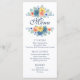 This menu card design features colourful elegant watercolor spring flowers in soft teal, blue, coral and yellow with green leaves on a white background with your with your personalised menu below. The text can be personalised by editing the text boxes. The colour on the reverse side of the menu can be changed in the editor. Designed for you by Evco Studio © at www.zazzle.com/store/evcostudio #wedding #menu #menucard #spring #summer #watercolor #weddinginspiration #botanical #foliage #floral #flowers #elegant #stylish #modern #design #popular #topsellers #topselling #custom #trending #winterwedding #springwedding #summerwedding #autumnwedding #flowerthemed #engagement #stationery #personalised #personalised #destination #formal #classic #celebration #white #teal #blue #coral #peach #yellow #white #function #party #partyplanning