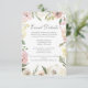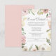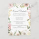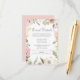 An elegant floral bouquet of pink peonies create the top border of this lovely spring wedding event details card. The sprigs of sage leaves decorate in the midst of the peach array of flowers add to the elegance. The blush watercolor back to this vertical card lends a classy and unique finishing touch. Perfect for reception and accommodations information or a wedding website link.