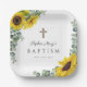 Elegant Floral Sunflower Cross Baptism Paper Plate