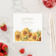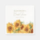 Bright yellow sunflower floral blooms bouquet border with greenery foliage making elegant boho chic spring summer fall garden bridal shower personalised paper napkins with whimsical elegant modern hand lettered calligraphy script over a white background.
