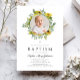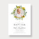 Elegant Floral Sunflower Wreath Girl Photo Baptism Invitation.
