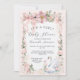 Elegant Floral Swan Blush Pink Ribbon Baby Shower Invitation