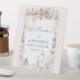 Swan & Pink Ribbon themed table top "WELCOME to our Baby Shower sign." This fairytale girly an elegant white mama and baby Swans with pink satin ribbon with beautiful pale pink border with blush pink flowers frame your sign's text. A delightfully girly, feminine invitation suite is the perfect way to celebrate her soon arrival. There is a complete product collection available to coordinate: MSP0122