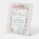 Elegant Floral Swan Pink Ribbon Girl Baby Shower Pedestal Sign