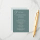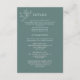Elegant Floral Teal wedding invitation enclosure card featuring playful sprigs of wildflowers in the left top corner. Your monogram initial on the backside.