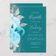 Elegant Floral Turquoise Silver Glitter Wedding Invitation